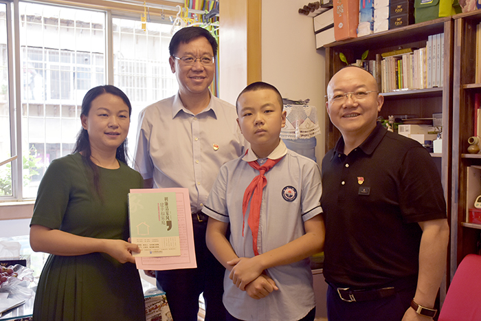家訪(fǎng)過(guò)程中,陳文雙詳細了解了張曉峰的家庭情況,翻閱了孩子的作文集和游記,了解孩子的學(xué)習情況,在得知孩子已經(jīng)擔任了4年云南省博物館的志愿講解員,并聆聽(tīng)了孩子現場(chǎng)背誦《兵車(chē)行》后,一再感嘆:“你們把孩子教育得很好!”