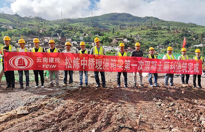 云蘭高速五分部松煉中橋現澆箱第一次混凝土澆筑完成